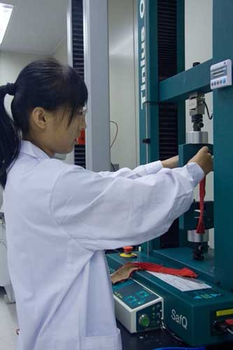 技術(shù)中心設(shè)置了綜合實驗室、化學(xué)實驗室等檢測實驗室,可進行包括甲醛含量、可分解芳香胺、可萃取重金屬、織物阻燃性能、織物外觀測試、線圈強力及各種牢度等80多個項目。2009年,技術(shù)中心實驗室通過了國際知名企業(yè)—迪卡儂公司的國際實驗室認證,2010年通過了國家實驗室認證審核。